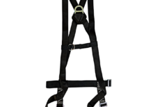 Cinturão de segurança tipo paraquedista. Confeccionado em fita de poliéster de 45mm e fita secundária de poliéster de 35 mm. Possui 1 ponto de conexão sendo uma meia-argola em “D” dorsal, confeccionada em aço de alta resistência para retenção de queda. Possui três fivelas duplas sem pino confeccionadas em aço estampado para ajuste, sendo uma na cintura e duas nas pernas, uma fivela simples confeccionada em aço e um passador plástico para ajuste peitoral. Produto certificado pelo INMETRO.